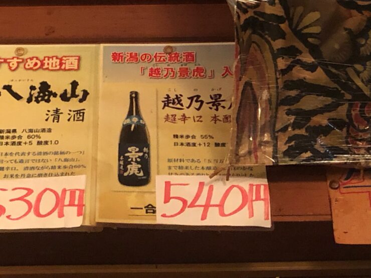 越乃景虎は、近くのスーパーとかでも結構売っているのですが、美味しくて飲みやすい日本酒です。