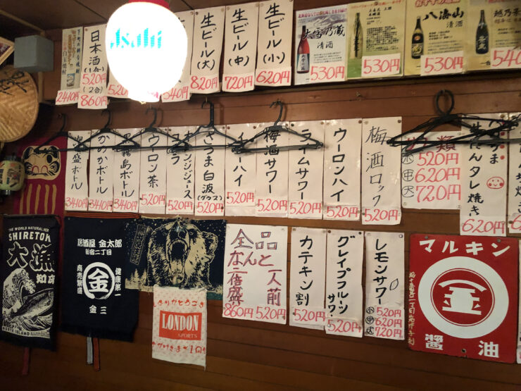 お酒のメニュー中心で、料理のメニューを写真に収めるのを忘れましたが、反対側の壁にはたくさん、料理のメニューも張り出されています。